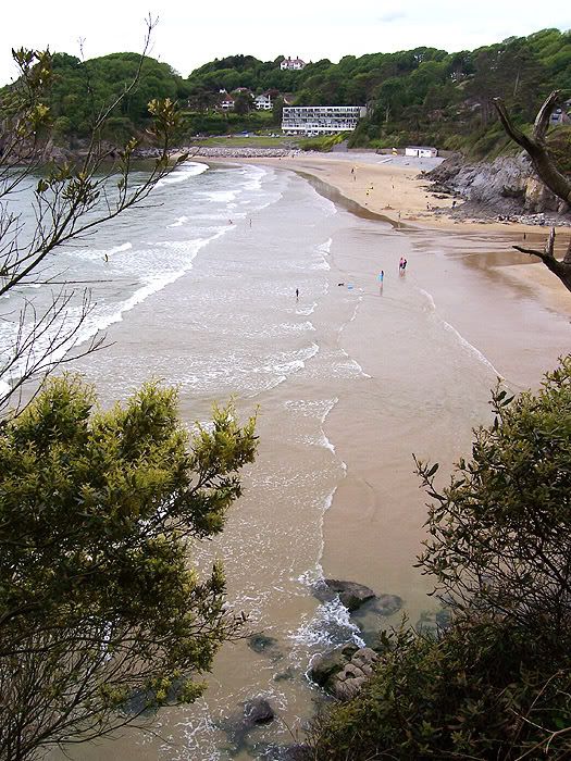 Looking east, as hardy pink sea thrift, Armeria maritima, clings to the cliff face.